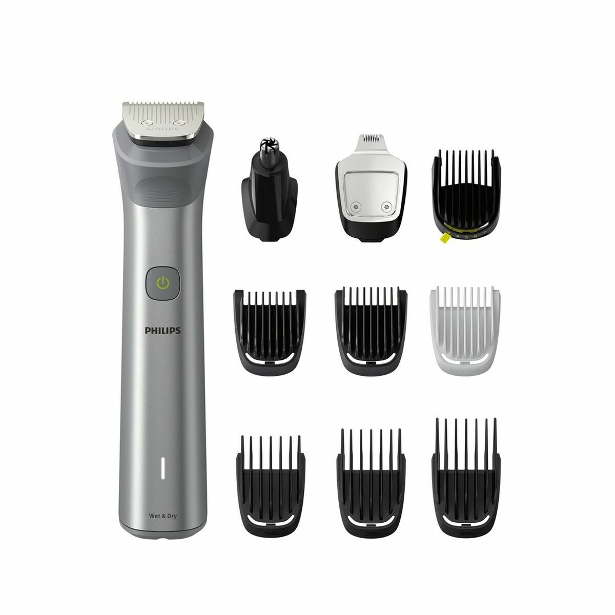 The Philips MG5920/15 is a high-performance electric shaver designed to offer versatility and precision in daily personal care, combining advanced functionality and ease of use in a compact device. Its water-resistant design allows for both dry and wet use and enables cleaning under the tap, providing convenience and safety even in humid environments like the shower. Thanks to its ergonomic design, it fits perfectly in the hand, offering optimal and secure control during shaving or trimming. The silver and steel finish enhances both aesthetics and a sense of durability, reflecting Philips’ characteristic quality. This shaver is completely cordless and rechargeable, allowing full freedom of movement and enough autonomy for several sessions, which is especially practical for travel or busy routines. It incorporates efficient cutting technology that ensures an even result, suitable for those seeking a close shave or precise maintenance of beard and facial hair. With its integrated features, the Philips MG5920/15 offers a comprehensive shaving and trimming solution, adapting to different styles and needs at home. In summary, this model represents a reliable, comfortable, and multifunctional option within the range of electric shavers, designed for those who value simplicity and effectiveness daily.