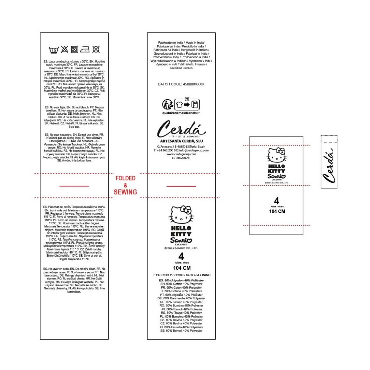 The Girl’s Hoodie Sweatshirt from the renowned brand Hello Kitty combines child-friendly design and functionality in a garment made for everyday casual wear. Its neutral grey color makes it easy to pair with various styles and pieces in a child’s wardrobe. It is crafted from a careful blend of 60% cotton and 40% polyester, materials that provide softness and breathability as well as durability and easy care, being machine washable. This composition ensures a comfortable fabric, ideal for the sensitive skin of young girls, while offering resistance to regular wear. The sweatshirt design includes a hood and front zipper, features that add extra protection against the cold and make putting on and taking off easier, making this garment very practical for changing temperatures. The cut is adapted to typical measurements for girls around 6 years old, ensuring a proper fit for this age. Its style is primarily casual, perfect for school activities, playtime, or informal outings where comfort is needed without losing the attractive and recognizable look provided by the Hello Kitty license, widely popular among children. Additionally, its manufacture in India is linked to standards that balance quality and price. This children’s sweatshirt represents a reliable and well-crafted choice in kids’ clothing, designed to offer functionality, comfort, and a distinctive style touch characteristic of the Hello Kitty brand.