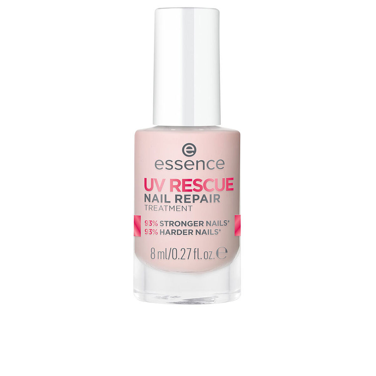 The nail treatment Essence UV RESCURE No. 01 is a specific care polish that helps protect and improve the appearance of the natural nail, with a formula developed in Germany and suitable for all users thanks to its unisex character. Presented in a practical 8 ml bottle, this treatment is applied like a regular nail polish, creating a protective film on the nail surface that helps strengthen it against external aggressions, frequent manicures or environmental factors. Its composition includes a combination of resins and film-forming agents such as nitrocellulose, acrylates copolymer and acetyl tributyl citrate, which provide adhesion and durability, together with solvents like ethyl acetate and butyl acetate for smooth application. It also contains moisturizing and conditioning ingredients such as glycerin and squalene, which help keep nails looking healthier, as well as plant extracts of Equisetum arvense (horsetail) and Urtica dioica (nettle), traditionally used in cosmetics to care for weak or damaged nails. The formula is vegan, fragrance-free and paraben-free, ideal for those seeking manicure products with a cleaner composition, and includes antioxidants such as tocopherol (vitamin E) and pigments like titanium dioxide and aluminum hydroxide, which contribute to an even finish and help protect against discoloration. With pH regulators such as citric acid and phosphoric acid, plus common cosmetic preservatives like potassium sorbate and sodium benzoate, the product maintains its stability and performance during the recommended period of use. Shade No. 01 is designed as an all-purpose treatment that integrates easily into any manicure routine, and can be applied alone or as a base coat under color polish. Overall, Essence UV RESCURE No. 01 is presented as a technical nail treatment that combines functionality, advanced cosmetic formulation and easy daily use.