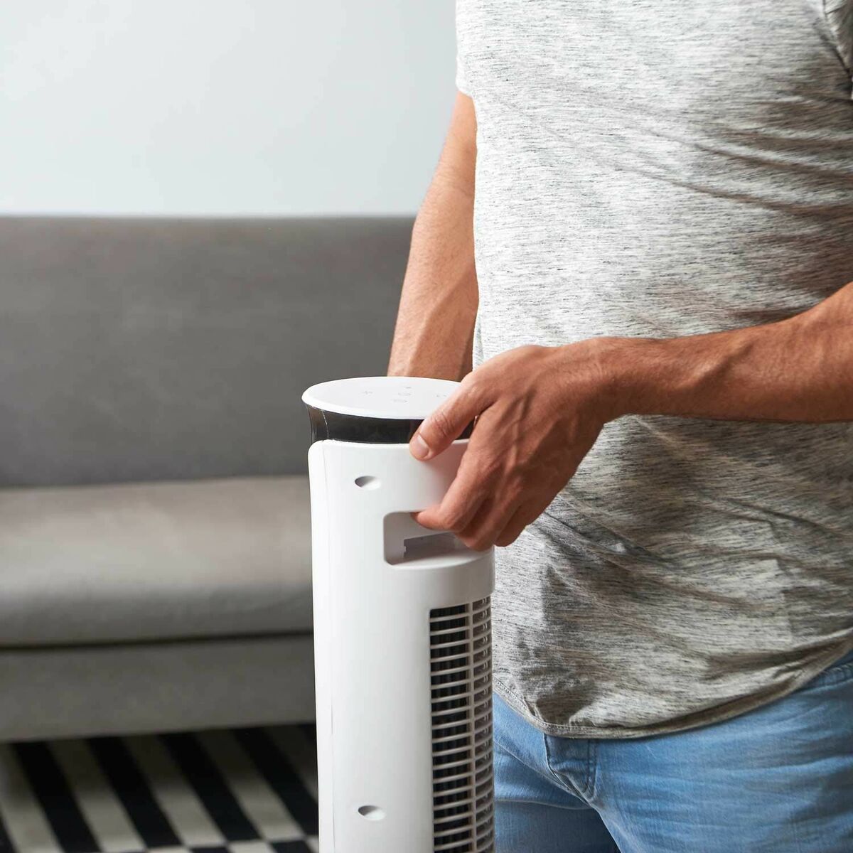 The Black & Decker BXEFT49E tower fan is a device designed to provide efficient and versatile air circulation in home or office environments, combining the advantages of a desktop fan and a tower fan in a single compact unit. With a power of 45 W, it delivers adequate performance to cool medium-sized spaces, ensuring a steady and adjustable airflow that enhances thermal comfort without excessive energy consumption. Its structure is made of white plastic, which adds lightness and ease of handling, while the non-slip base ensures stability and prevents accidental movement during use. This model also features a power cord that provides a fixed and secure connection to the electrical network, avoiding interruptions related to batteries or intermittent charging. The combination of functions allowing use as both a desktop and tower fan, along with the option of a floor fan, offers flexibility in placement and airflow direction according to the user’s specific needs and available space. Its vertical design occupies little space, fitting well on tables, desks, or corners, while the power and airflow are sufficient to maintain a comfortable temperature on warm days or improve ventilation in enclosed areas. The Black & Decker BXEFT49E fan combines quality and functionality with the brand’s recognized seal, making it a practical choice for those seeking an efficient, stable fan that is easy to place in various home or office settings.