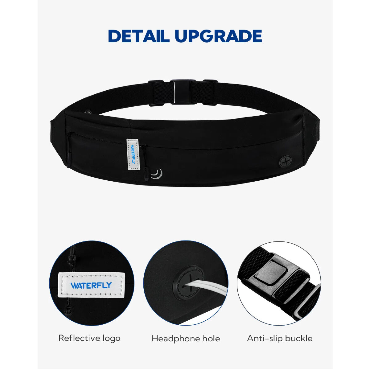 Waterfly Running Waist Bag 3.0 Black Unisex Lycra 1L with Reflectors & Headphone Output